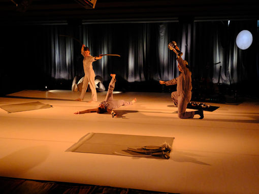 Les 2 danseuses, Alice Galodé et Aude Cartoux, amènent leur sensibilité, leur facétie, et grâce aux accessoires ludiques inventés par Nicole Autard, parviennent à établir un lien avec ce public jeune et curieux.
